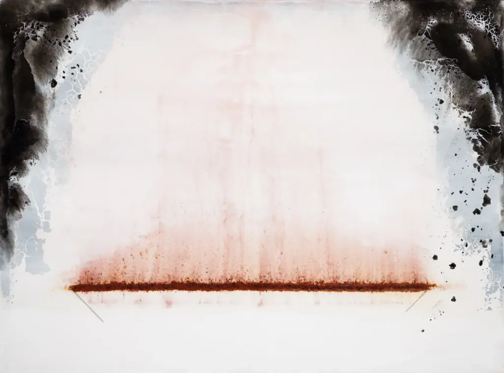 Thin Red Line, Carbon, Rust and Canvas, 62 x 46 x 2 inch, 2024