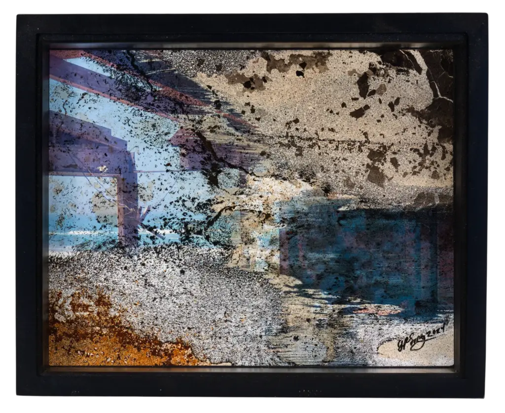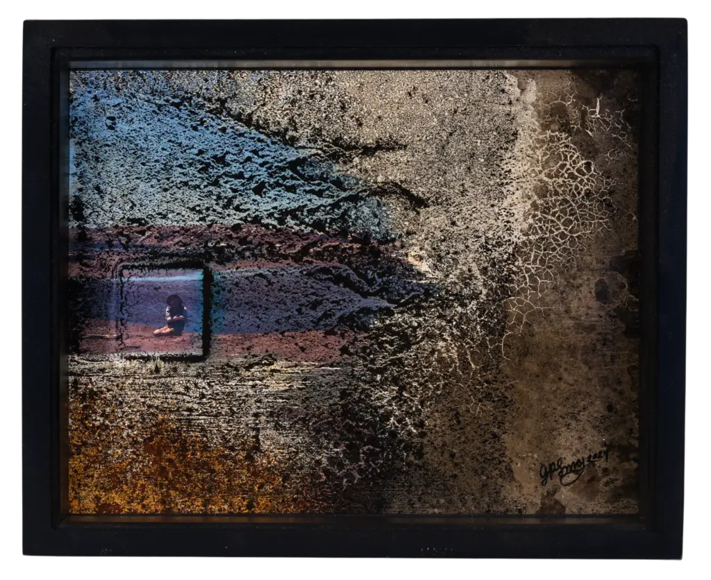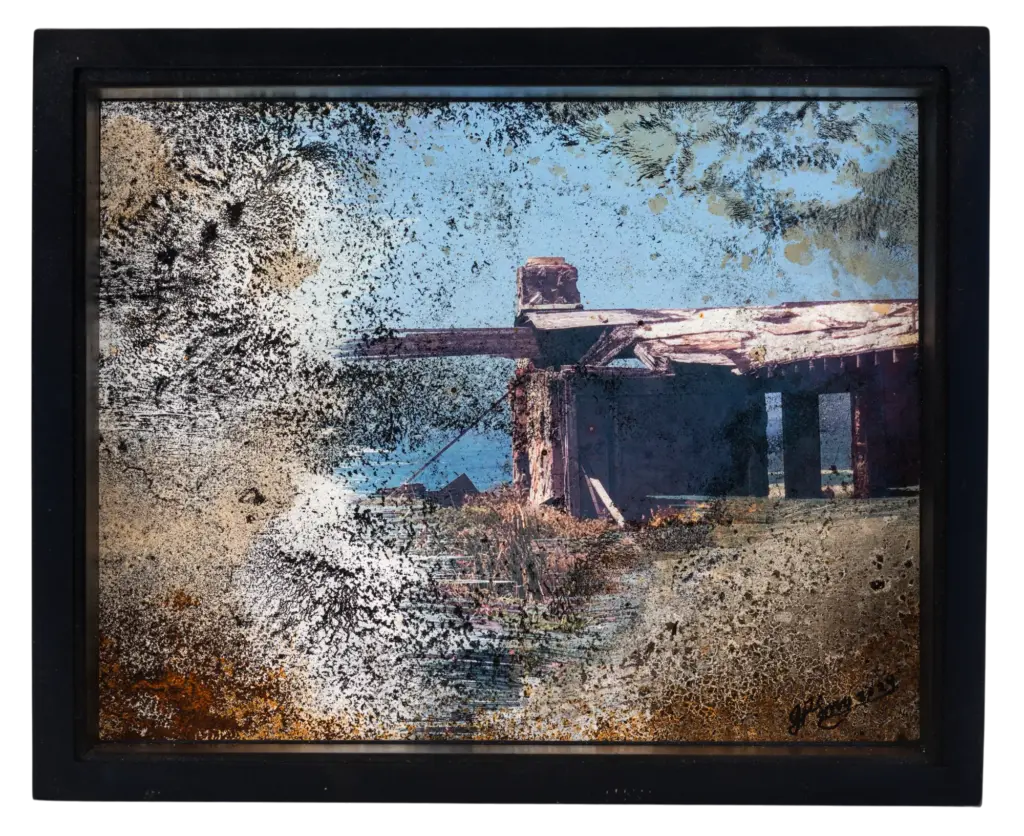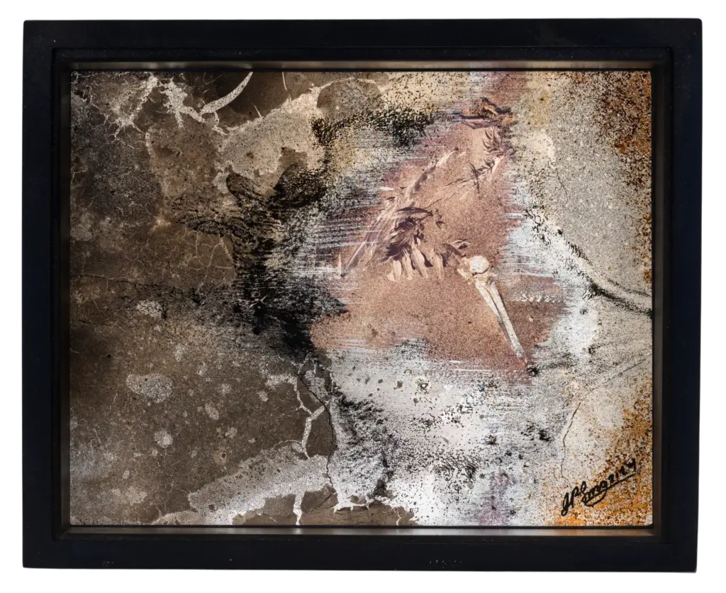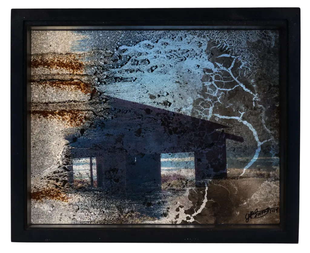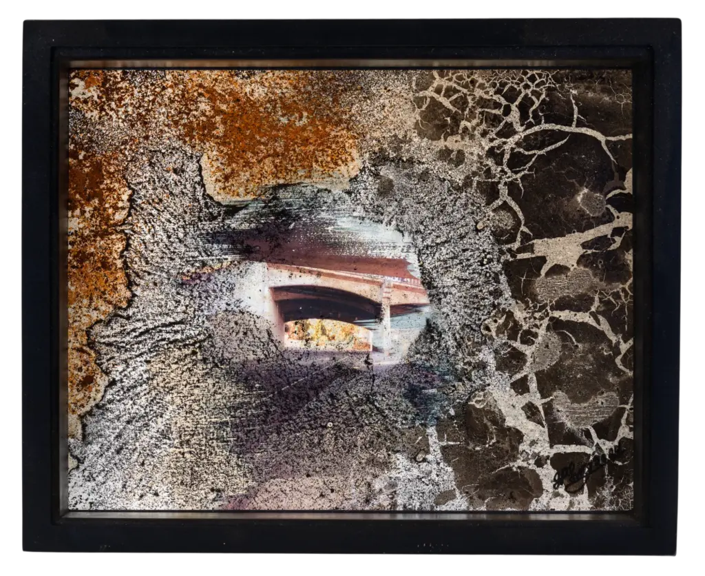 Room with a View, Iron Byproduct, Carbon, Sumi Ink and Gesso on Photo Paper, 9 x 11 x 2 inch, 2024
