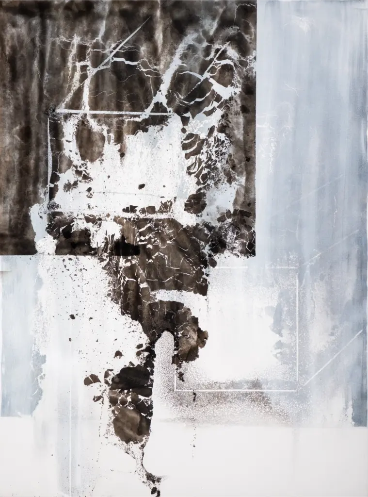 Scrap Yard, Iron Byproduct, Carbon, Sumi Ink and Gesso on Photo Paper, 11 x 9 x 2 inch, 2024