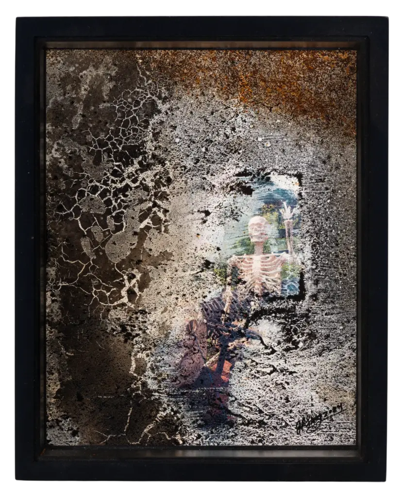 These Bones, Iron Byproduct, Carbon, Sumi Ink and Gesso on Photo Paper, 11 x 9 x 2 inch, 2024
