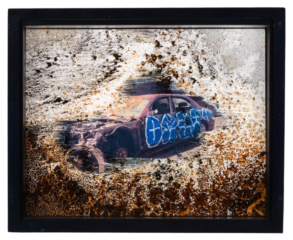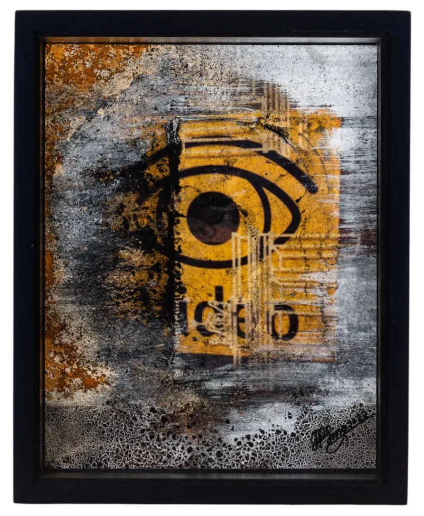 Unknown in color, Iron Byproduct, Carbon, Sumi Ink and Gesso on Photo Paper, 11 x 9 x 2 inch, 2022