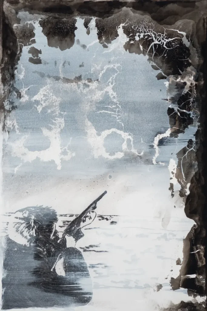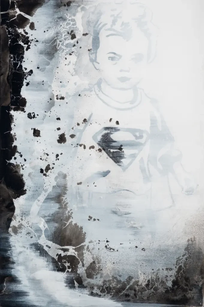 Super Boy, Carbon on Wood Panel, 30 x 20 x 2 inch, 2022