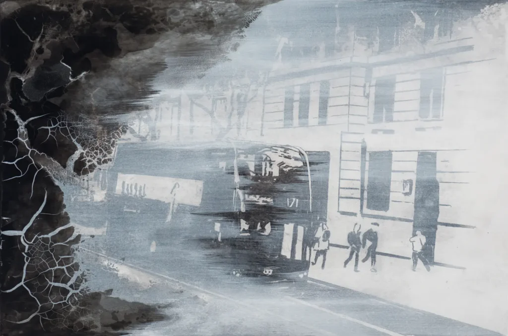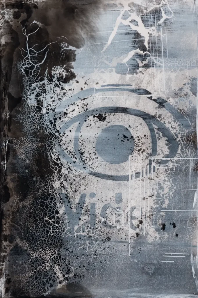 Crowd Control, Carbon on Canvas, 20 x 30 x 2 inch, 2022