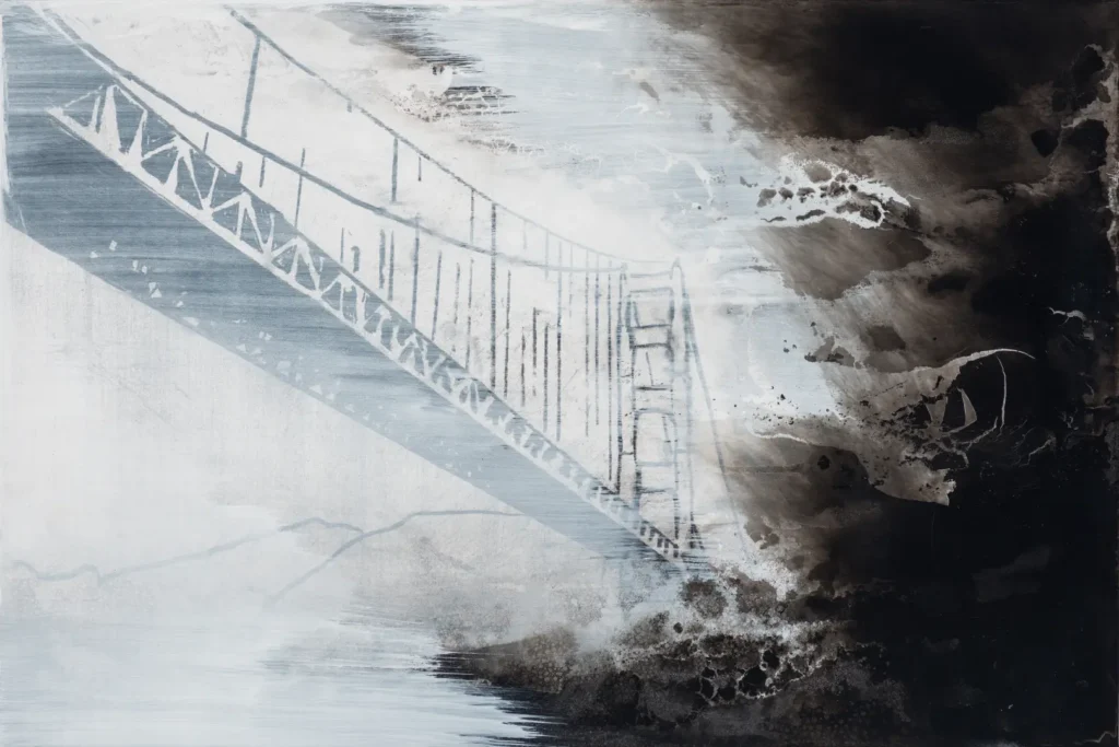 Golden Gate Bridge, Carbon on Wood Panel, 20 x 30 x 2 inch, 2022
