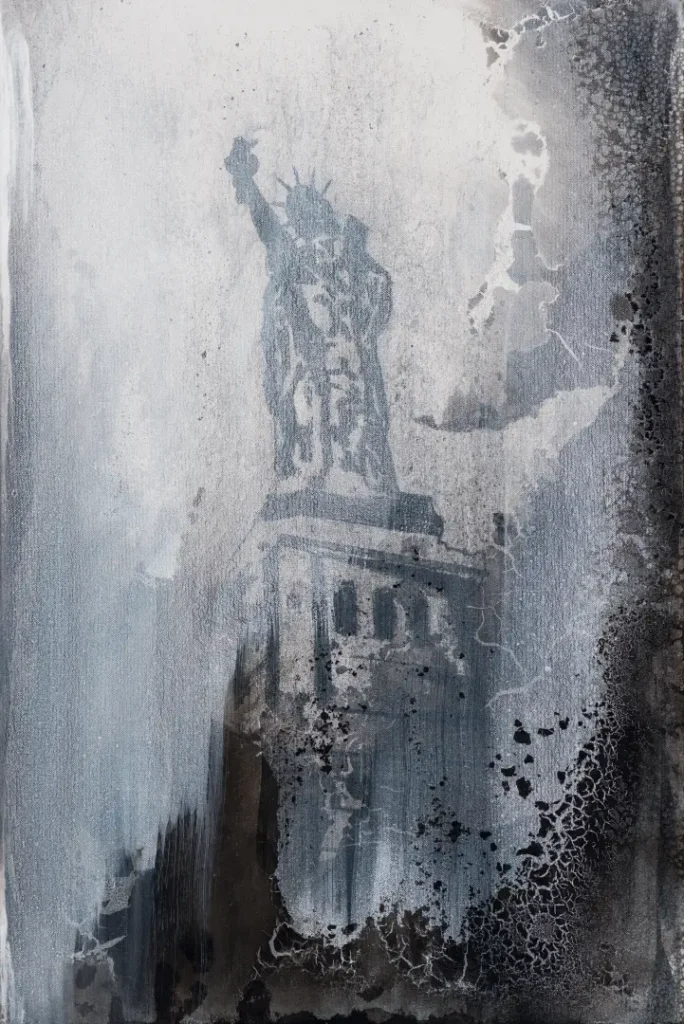 Shrouded Liberty, Carbon on Canvas, 30 x 20 x 2 inch, 2022