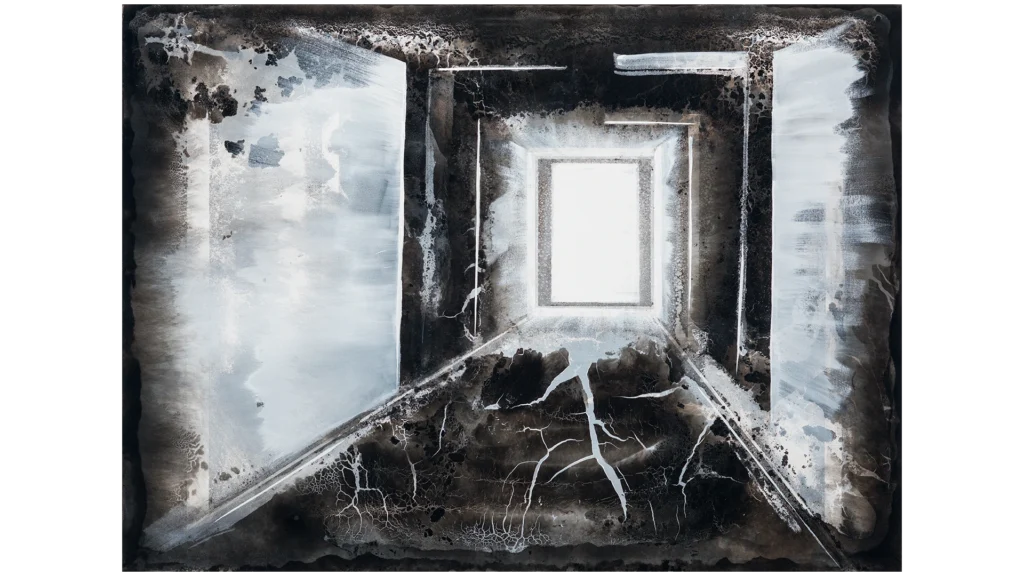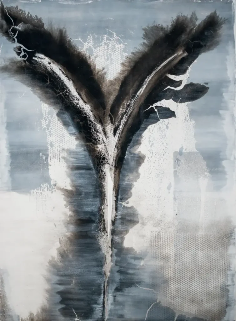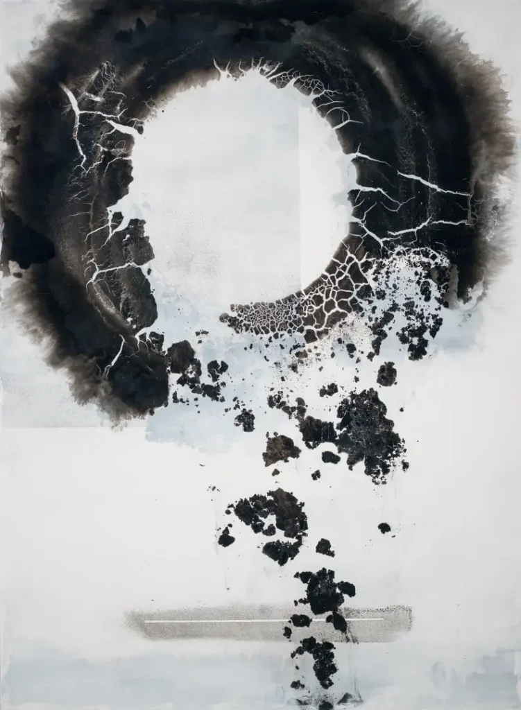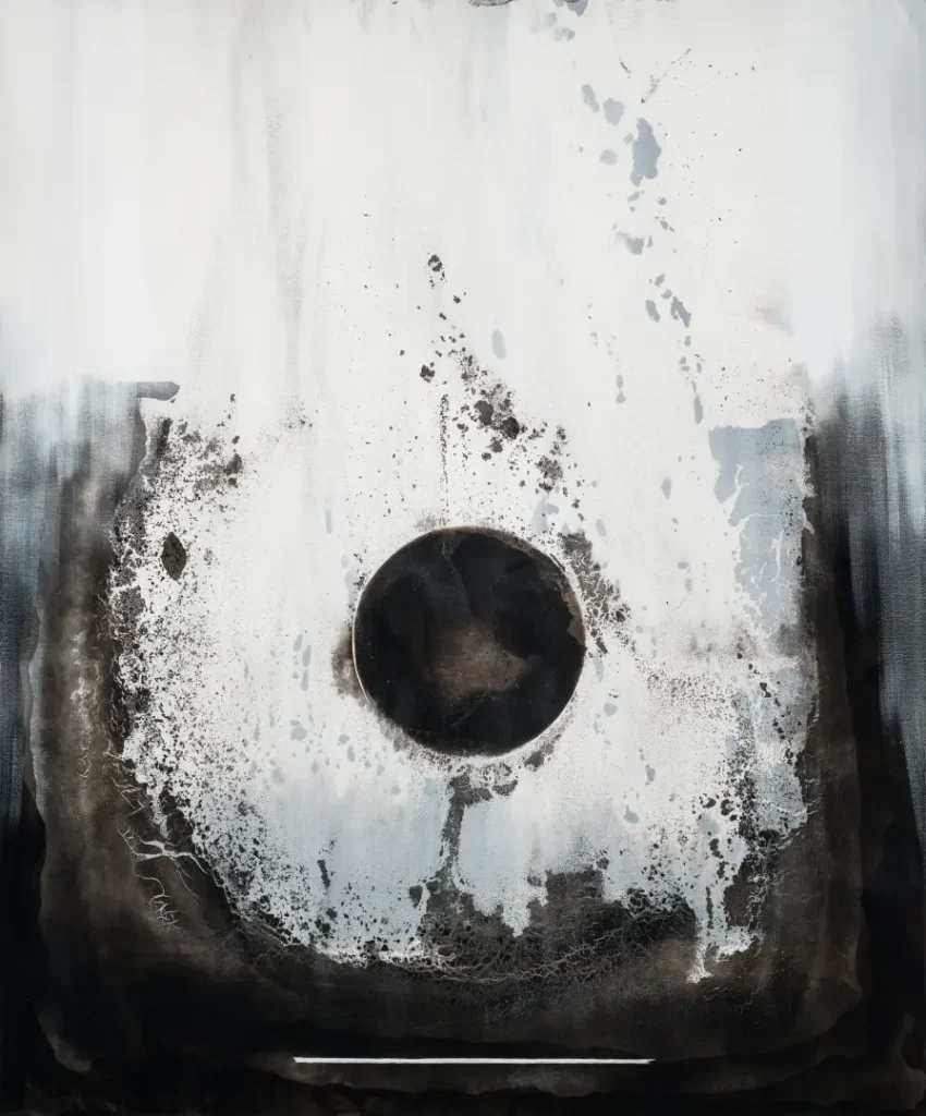 C2H2 61, Carbon and Canvas, 66 x 49 x 2 inches, 2019