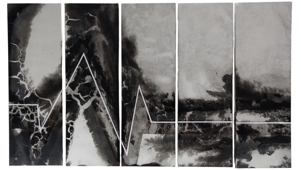 C2H2 15, Carbon and Canvas, 36 x 64 x 1.5 inches, 2014