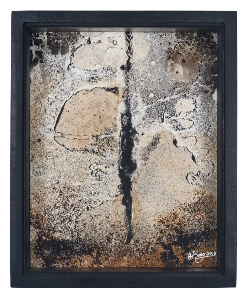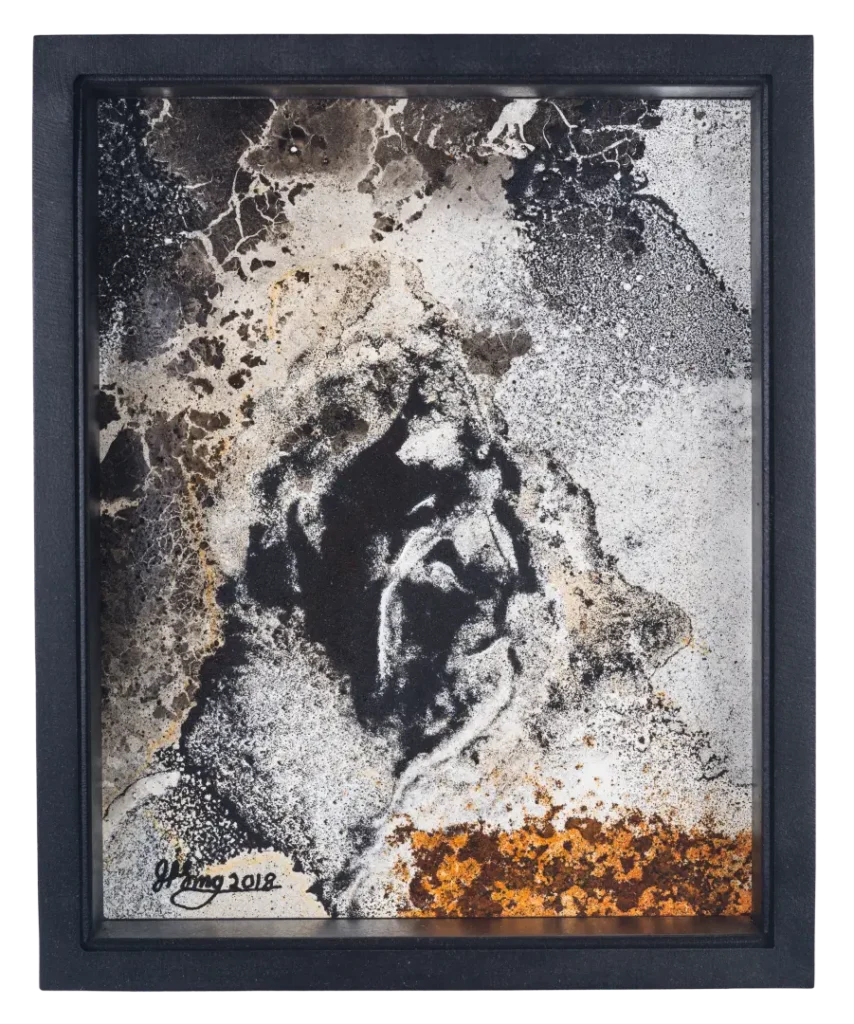 In the blink of an eye, Iron Byproduct, Carbon and Sumi Ink on Photo Paper, 9 x 11 x 2 inch, 2018