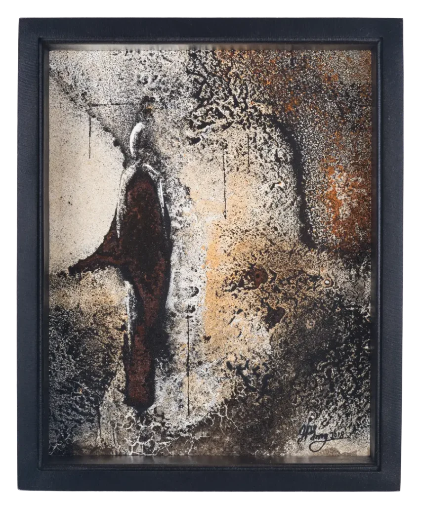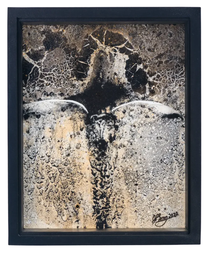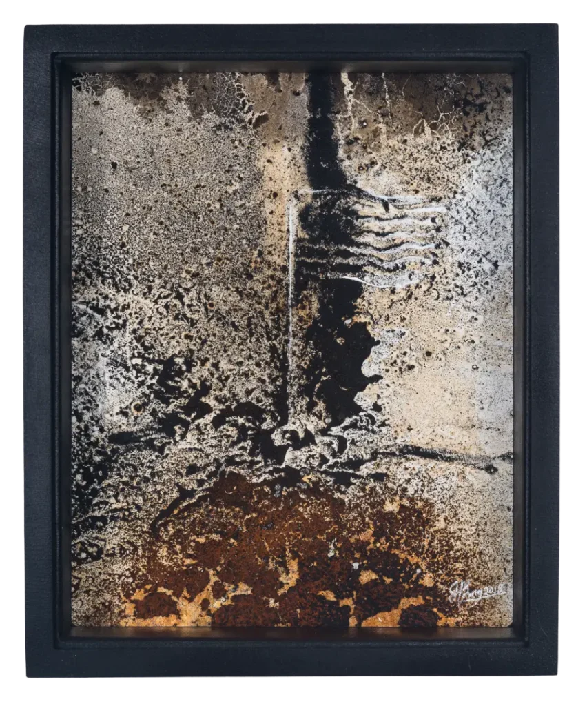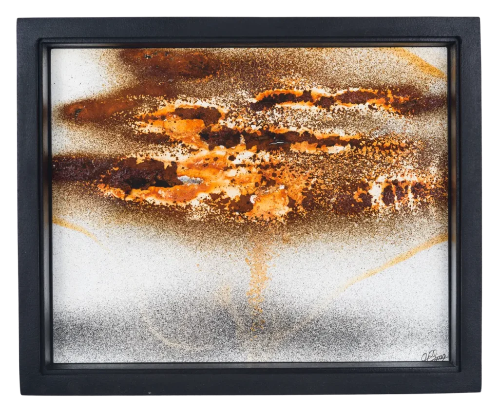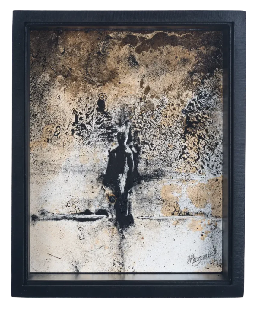 Influenza, Iron Byproduct, Carbon and Sumi Ink on Photo Paper, 11 x 9 x 2 inch, 2020