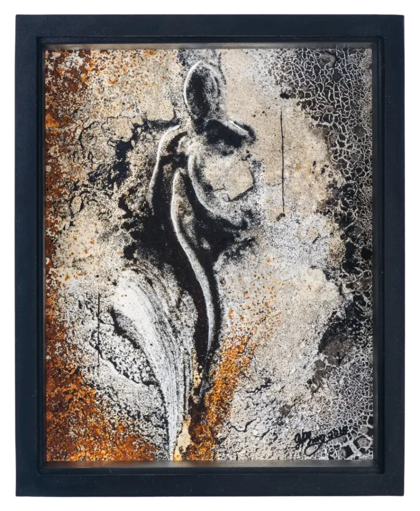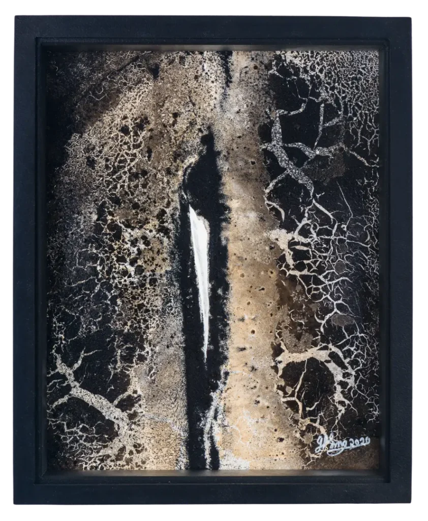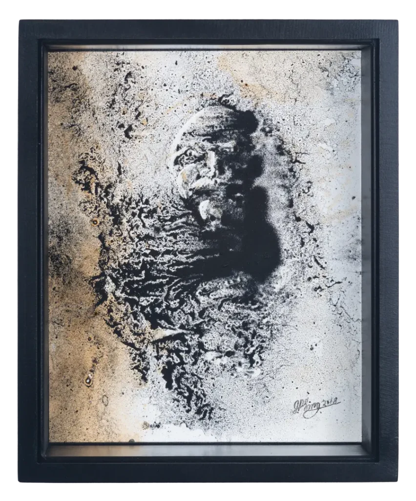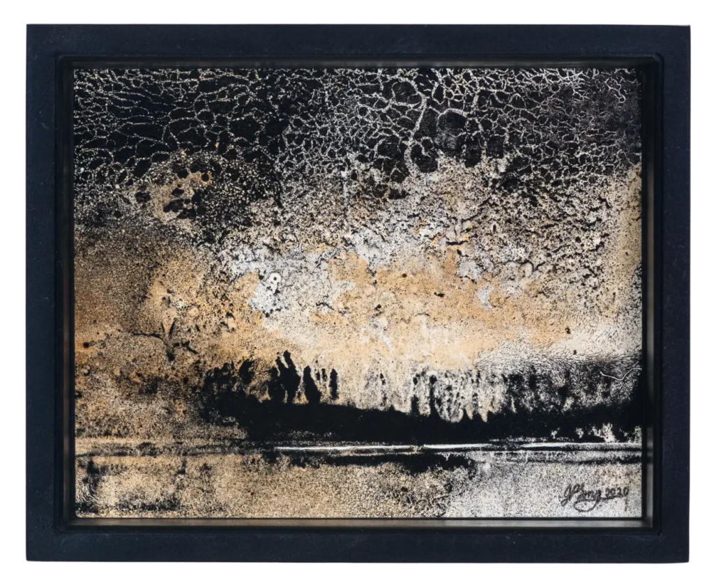 Momento, Iron Byproduct, Carbon and Sumi Ink on Photo Paper, 11 x 9 x 2 inch, 2020