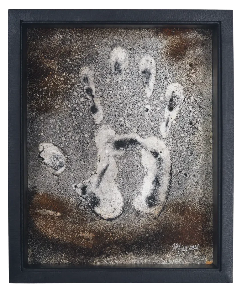 My Right Hand, Iron Byproduct, Carbon and Sumi Ink on Photo Paper, 11 x 9 x 2 inch, 2018