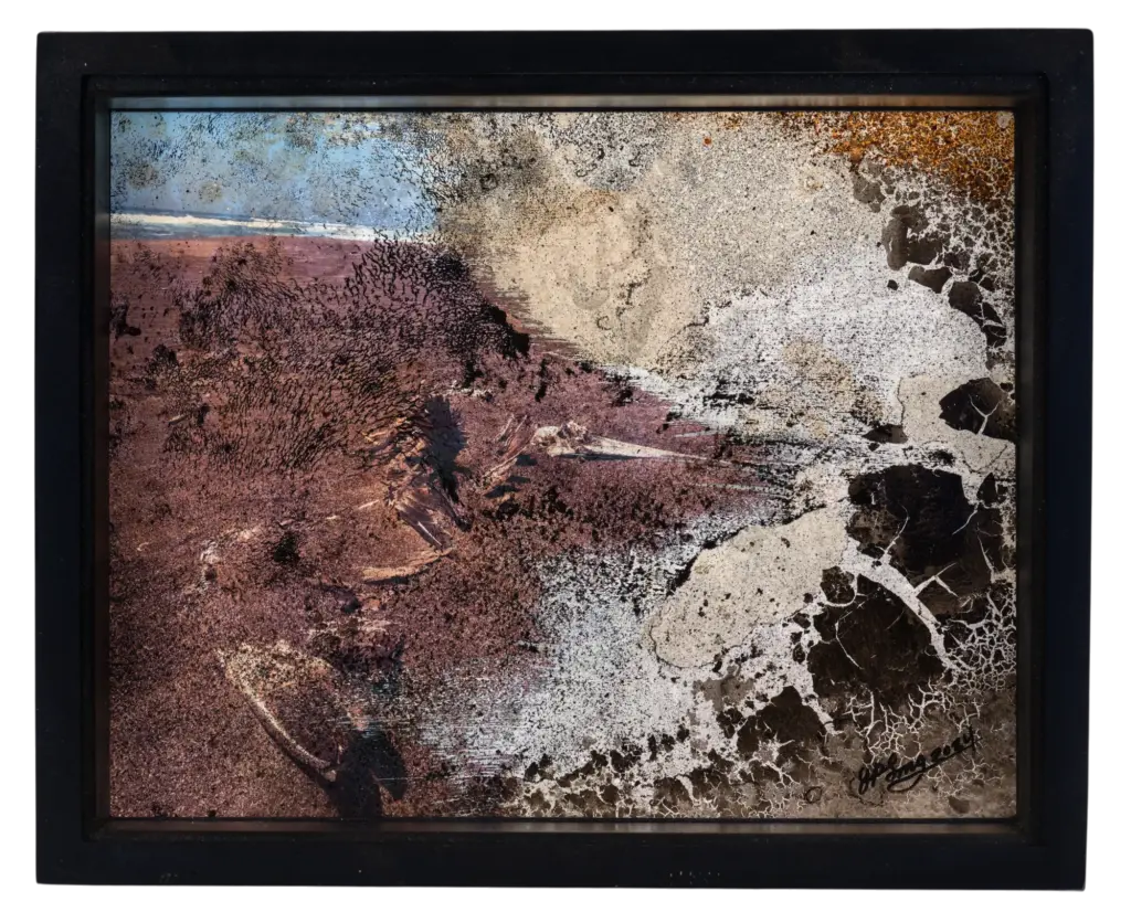 Resort, Iron Byproduct, Carbon, Sumi Ink and Gesso on Photo Paper, 9 x 11 x 2 inch, 2024
