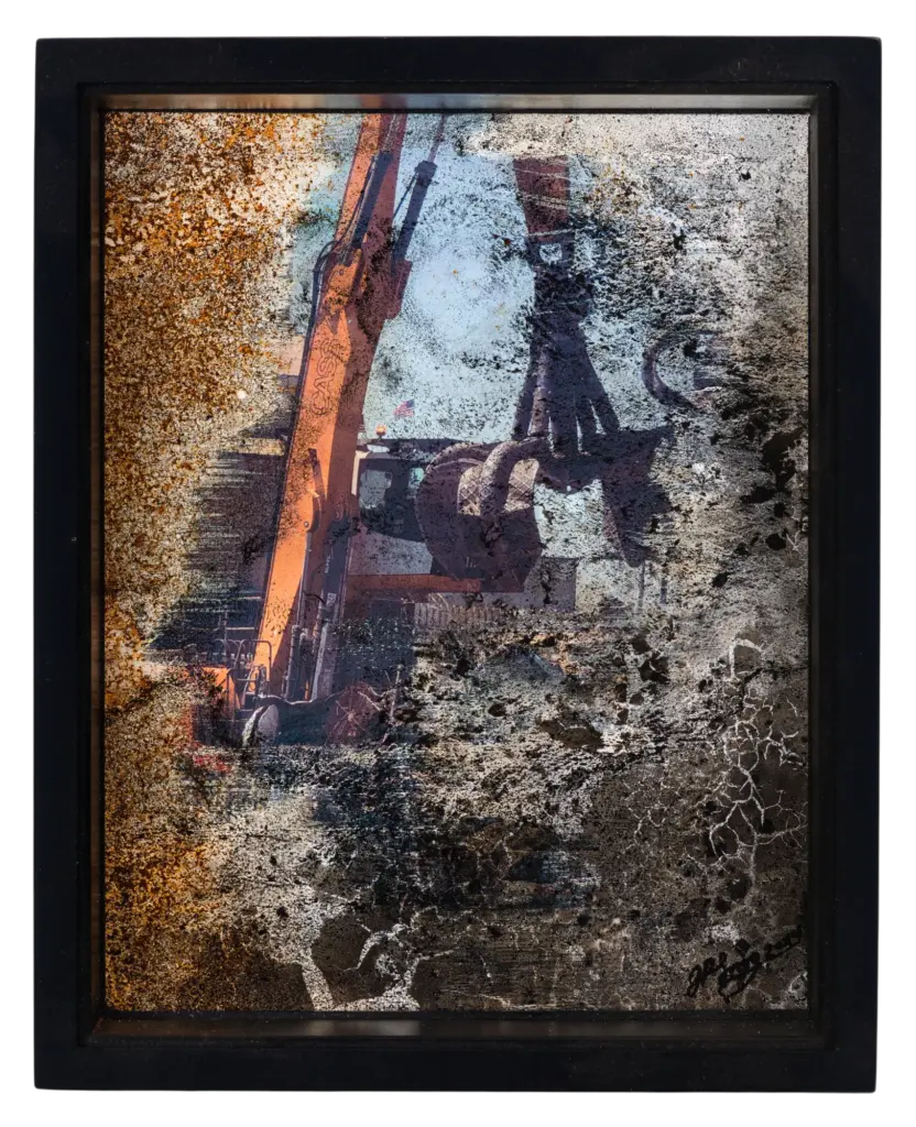 Scrap Yard, Iron Byproduct, Carbon, Sumi Ink and Gesso on Photo Paper, 11 x 9 x 2 inch, 2024