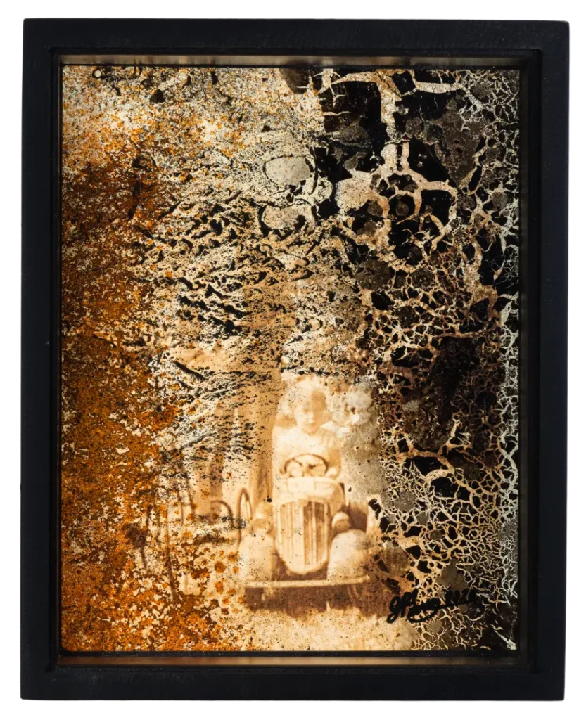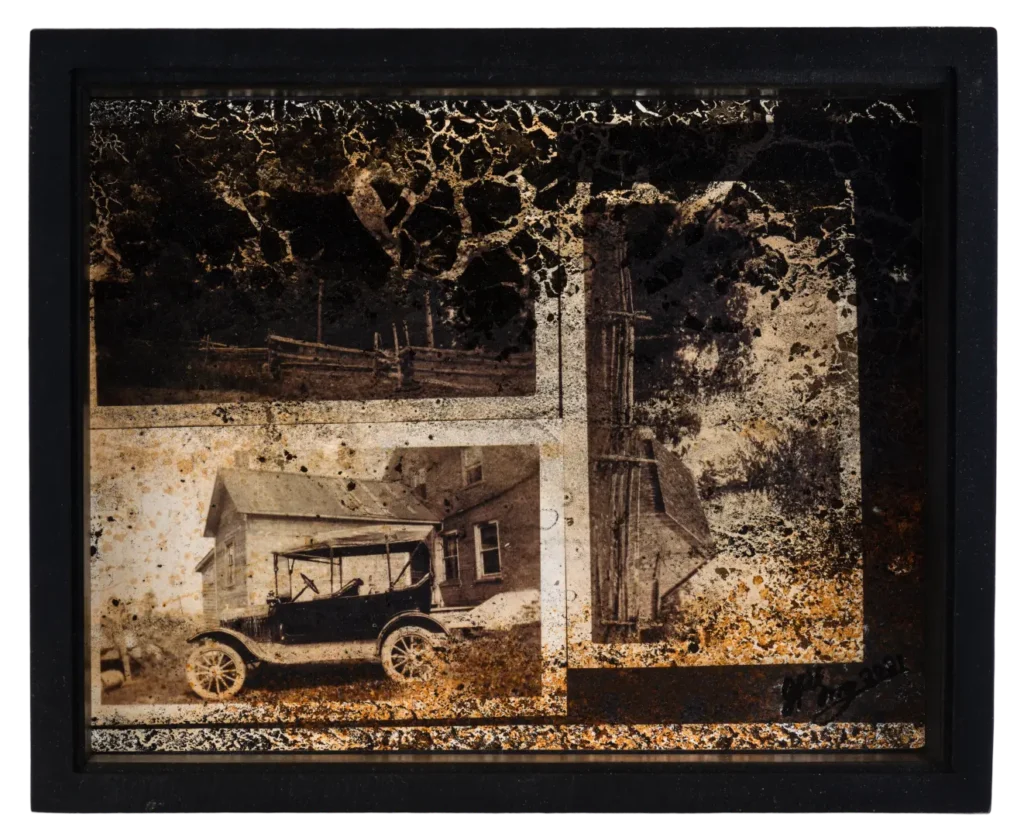 Motor Car, Iron Byproduct, Carbon and Sumi Ink on Photo Paper, 11 x 9 x 2 inch, 2020