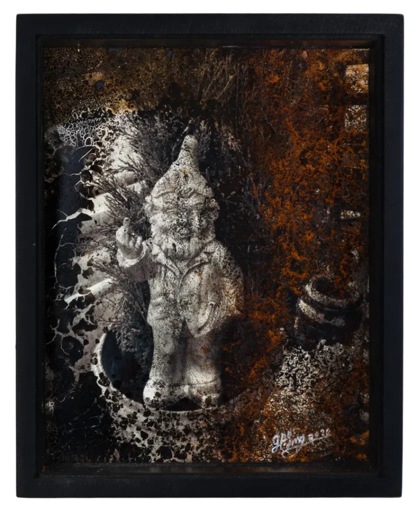 Gnome, Iron Byproduct, Carbon and Sumi Ink on Photo Paper, 11 x 9 x 2 inch, 2020