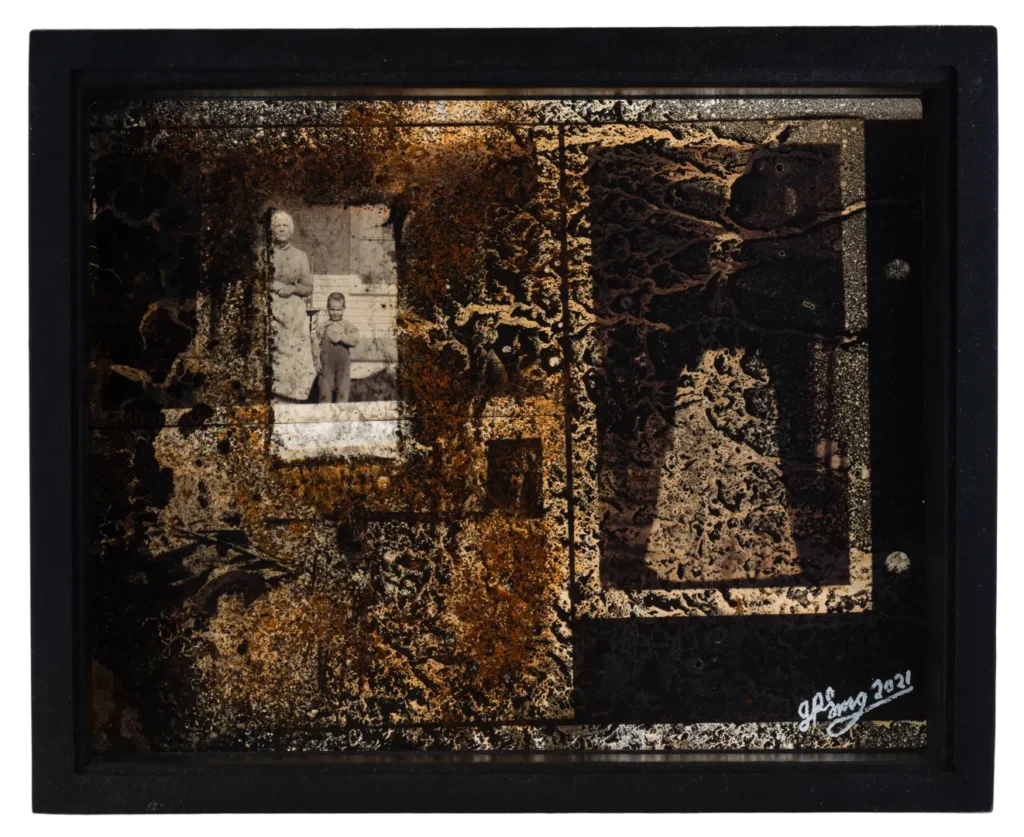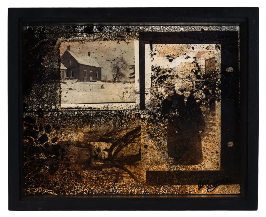 Homestead, Iron Byproduct, Carbon and Sumi Ink on Photo Paper, 9 x 11 x 2 inch, 2021