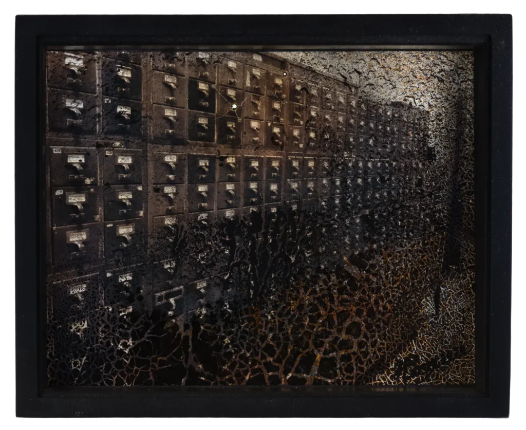Card Catalog, Iron Byproduct, Carbon and Sumi Ink on Photo Paper, 9 x 11 x 2 inch, 2020