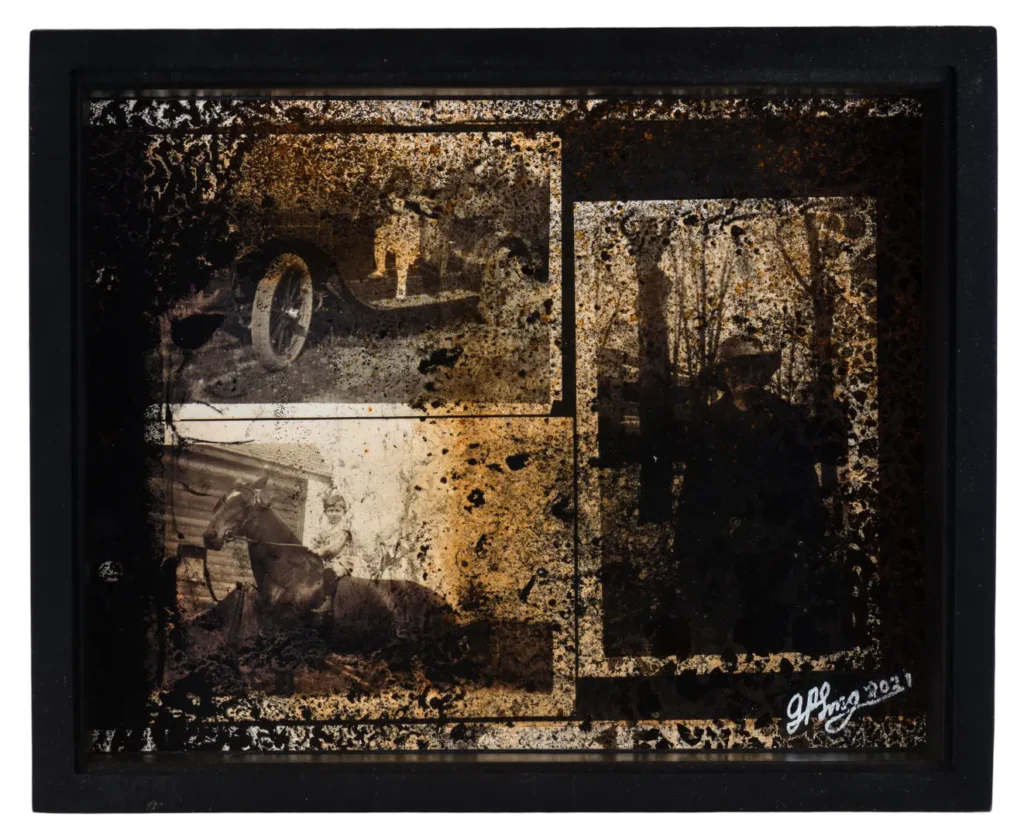 Equestrian, Iron Byproduct, Carbon and Sumi Ink on Photo Paper, 9 x 11 x 2 inch, 2021