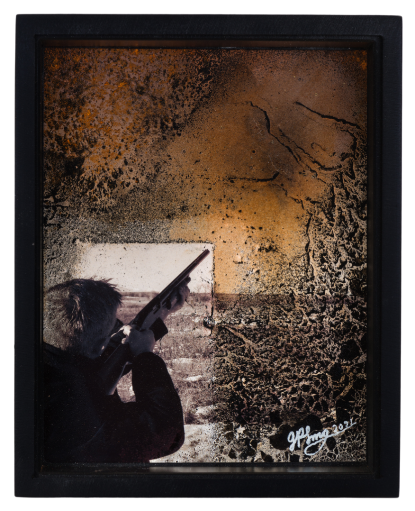 Boy, Iron Byproduct, Carbon and Sumi Ink on Photo Paper, 9 x 11 x 2 inch, 2021