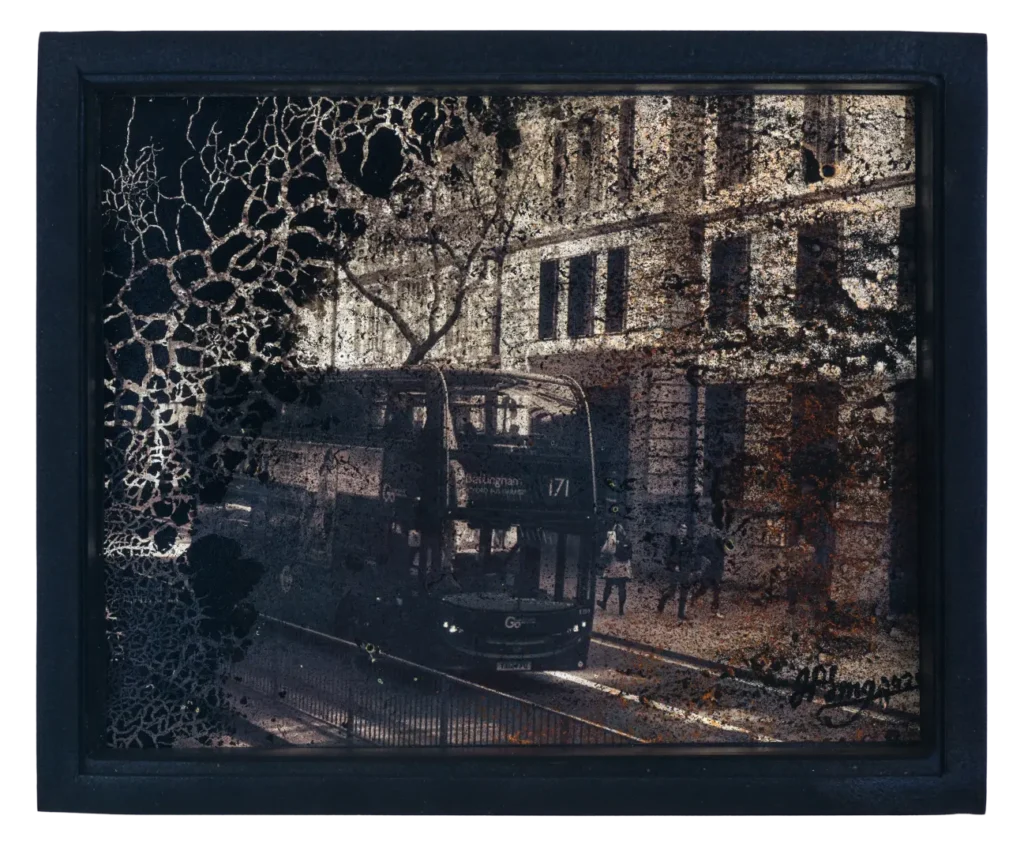 HKL jr, Iron Byproduct, Carbon and Sumi Ink on Photo Paper, 11 x 9 x 2 inch, 2022