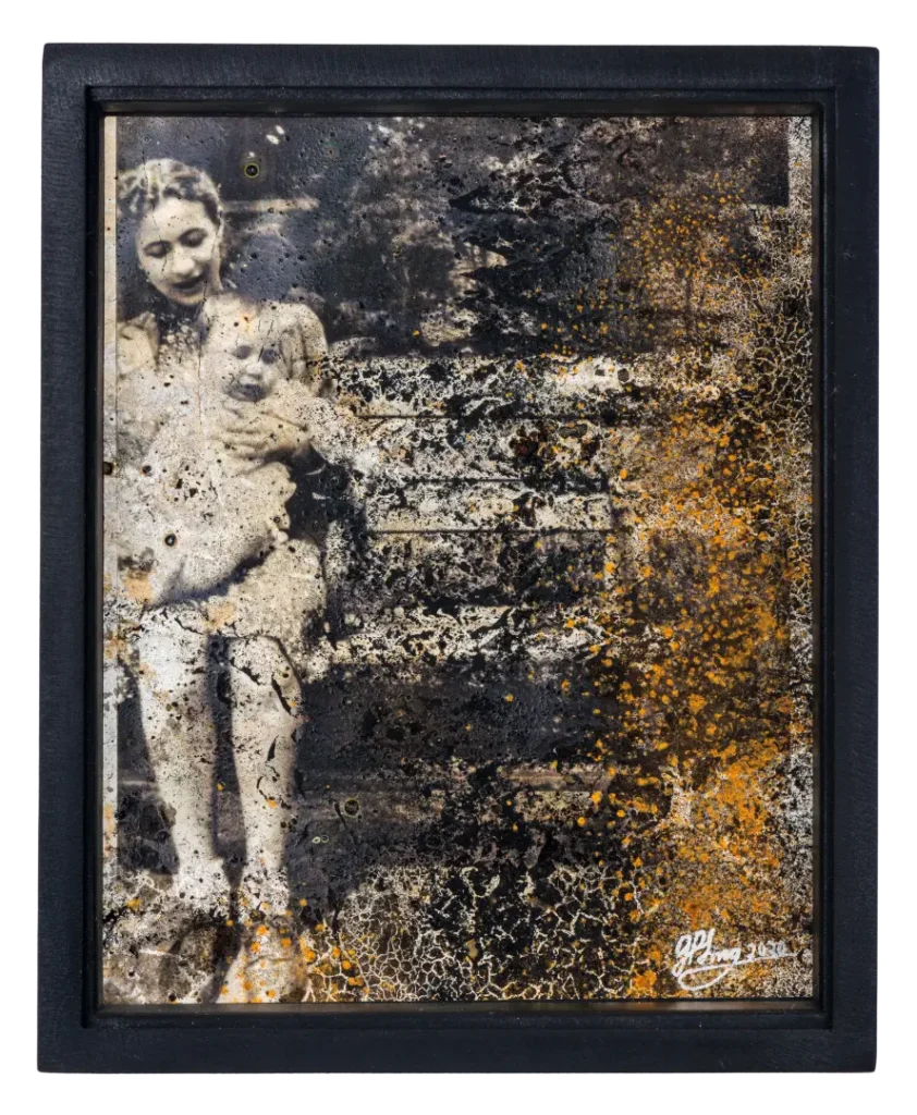 Boy, Iron Byproduct, Carbon and Sumi Ink on Photo Paper, 9 x 11 x 2 inch, 2021
