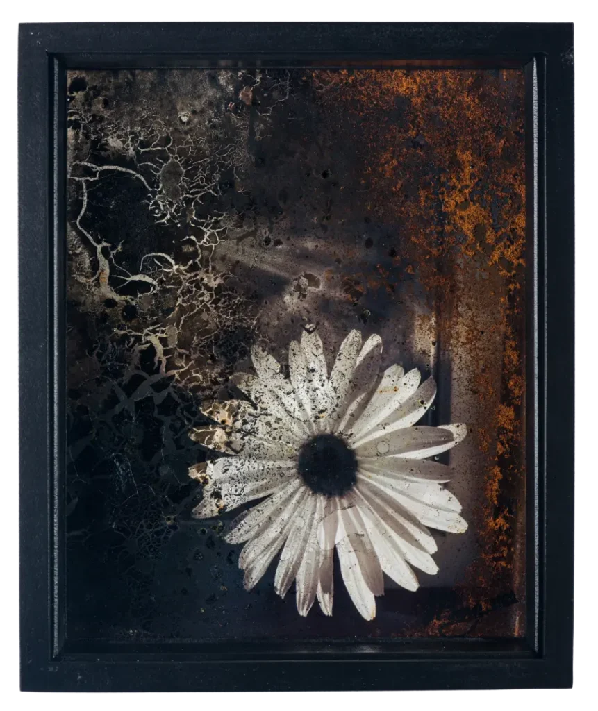 Daisy, Iron Byproduct, Carbon and Sumi Ink on Photo Paper, 11 x 9 x 2 inch, 2020