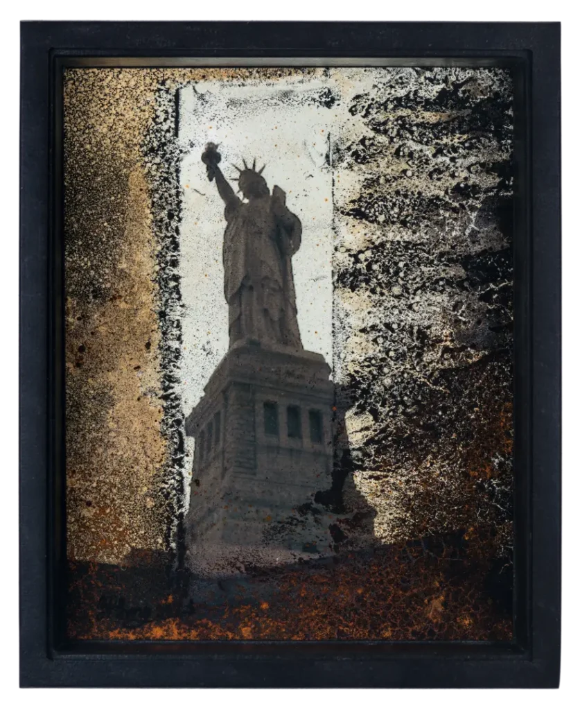 Liberty, Iron Byproduct, Carbon and Sumi Ink on Photo Paper, 11 x 9 x 2 inch, 2021