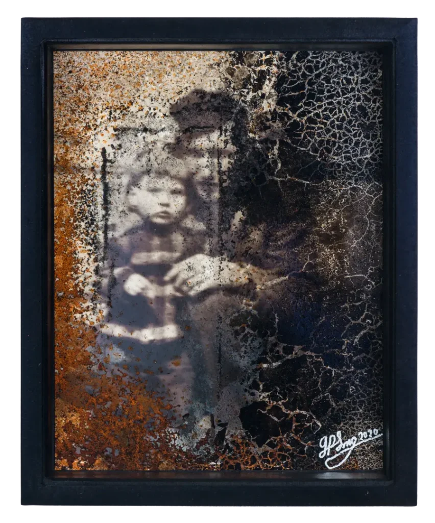 CJ and Marge 2, Iron Byproduct, Carbon and Sumi Ink on Photo Paper, 11 x 9 x 2 inch, 2020