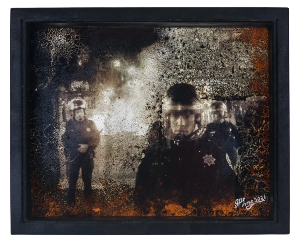Riot 2, Iron Byproduct, Carbon and Sumi Ink on Photo Paper, 11 x 9 x 2 inch, 2021