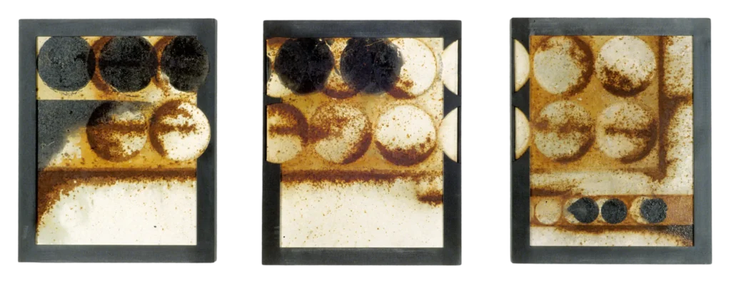 Triptych 3, Steel and Carbon on Canvas, 2014