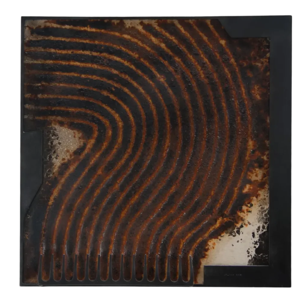 Oxidation 17, Steel and Carbon on Canvas, 21 x 17 x 1.5 inch, 2014