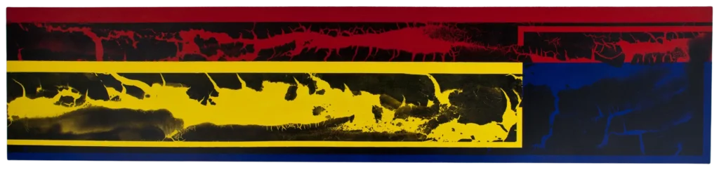 C2H2 1, Carbon and Raw Pigment on Canvas, 9 x 31 x 2 inch, 2012