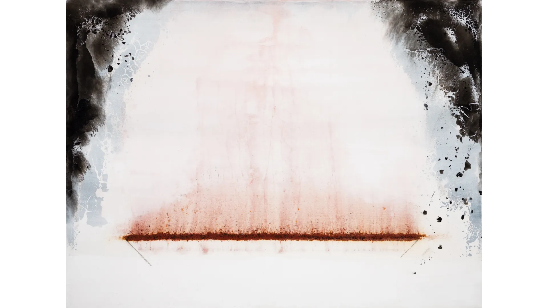 Thin Red Line, Carbon, Rust and Canvas, 62 x 46 x 2 inch, 2024