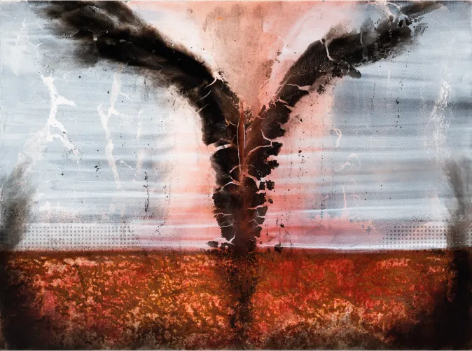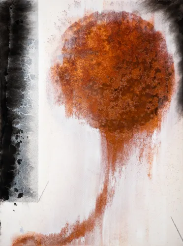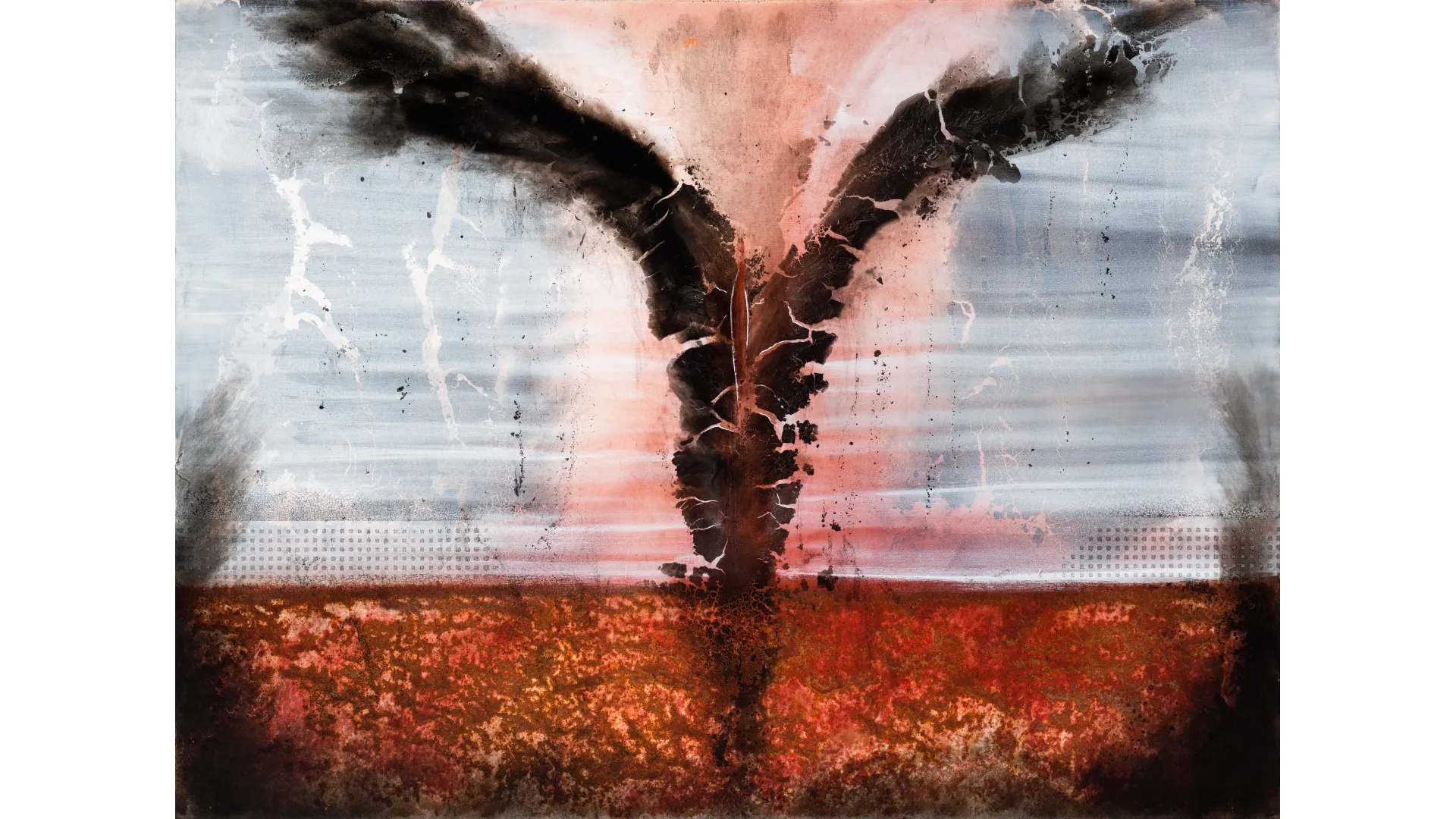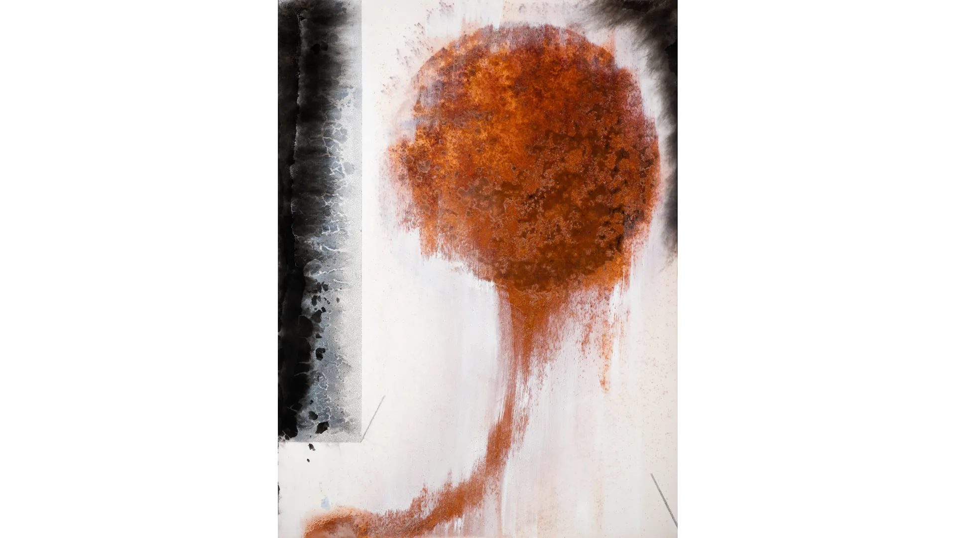 The Great Experiment, Carbon, Rust and Canvas, 46 x 62 x 2 inch, 2024
